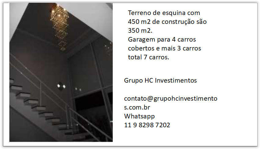 Terreno de esquina com 450 m2 de construção são 350 m2.